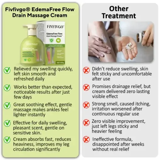 Fivfivgo® EdemaFree Flow Drain Massage Cream is crafted to target swelling and discomfort at its source, promoting healthier circulation and improved fluid balance.