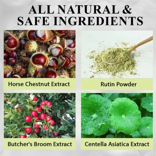 - Horse Chestnut Extract – Helps improve venous tone and reduce fluid leakage, supporting healthier circulation and comfort.